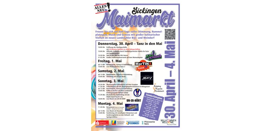 Der Sickingen Maimarkt 2026 ist damit weit mehr als eine klassische Kerb. Er ist ein Aufbruch, ein neues Kapitel und vor allem eine herzliche Einladung an alle, den Maimarkt neu zu entdecken und gemeinsam mit Leben zu füllen. Die Sickingenstadt Landstuhl freut sich auf Ihren Besuch!