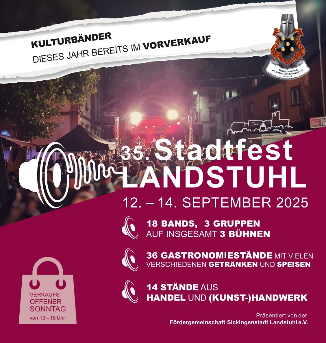 Die Sickingenstadt Landstuhl liegt im Zentrum des Landkreises Kaiserslautern und hat circa 8.500 Einwohnerinnen und Einwohner. Landstuhl ist anerkannter Erholungsort, voll ausgestattetes Mittelzentrum und verfügt neben einer ausgezeichneten Verkehrslage und der Stadthalle, dem Kultur- und Kongreßzentrum der Sickingenstadt Landstuhl, über die verschiedensten Versorgungs- und Dienstleistungsbetriebe sowie zahlreiche Einrichtungen für die Freizeitgestaltung (Naturerlebnisbad, Tennis, Angeln, Tauchen Schießen, Radwandern, Wandern).