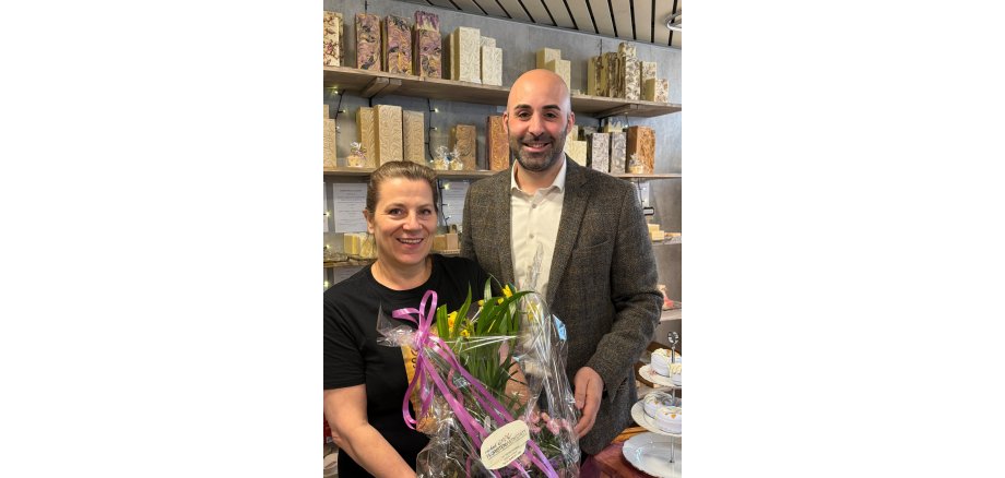 Zur Eröffnung ließ es sich Stadtbürgermeister Mattia De Fazio nicht nehmen, persönlich zu gratulieren. Er überreichte der Inhaberin Helen Chinnock ein Blumenpräsent und wünschte ihr für den neuen Standort viel Erfolg sowie zahlreiche zufriedene Kundinnen und Kunden.